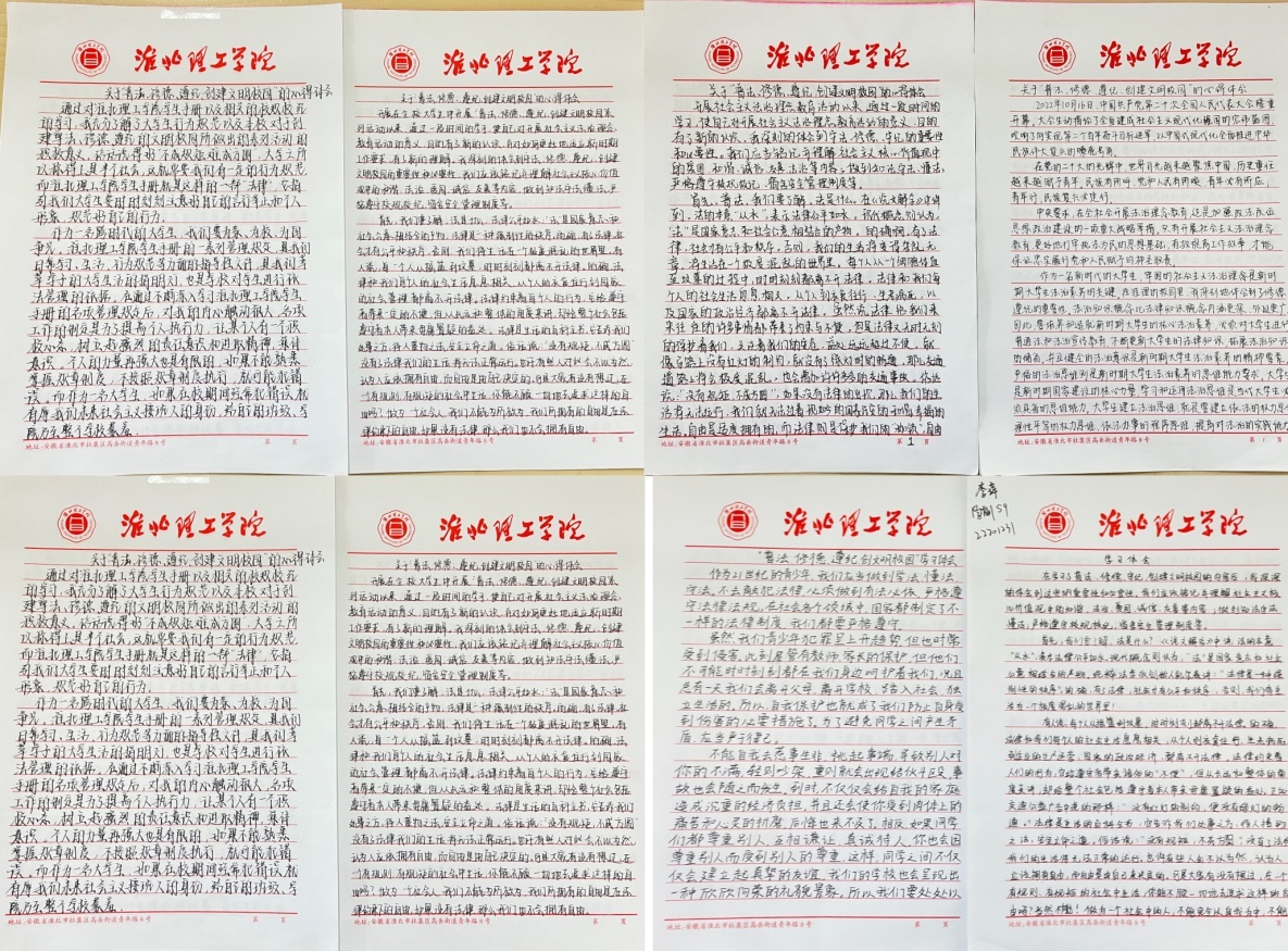 为树立当代大学生知礼守法,讲文明树新风的青春风貌,10月下旬,必赢76net线路官网要求全体学生认真手写一份不少于1000字的心得体会,并就主题做出承诺书。同学们用肃穆的文字,庄重的承诺,表示定会将法治精神落实到日常事务之中,活动成效显著。