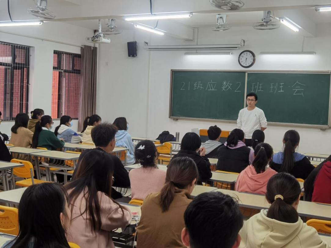 为进一步加强班级管理和学风建设,营造优良学风、团结奋进的班级氛围。必赢官网必赢76net线路官网2021级数学与应用数学(2)班于2022年10月13日在二教309教室召开新学期主题班会,由班主任檀雷雷老师主持,应数2班全体成员参加。