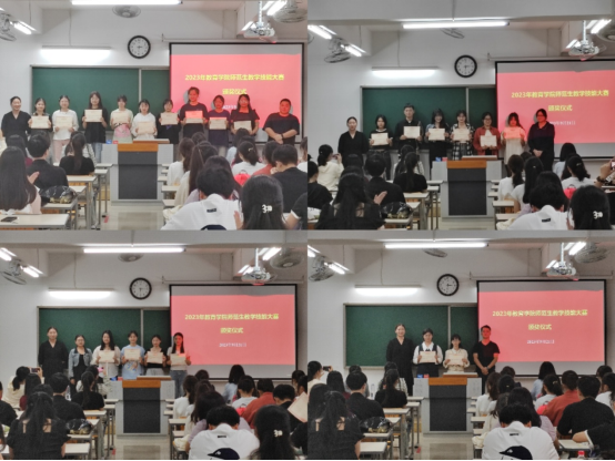 必赢76net线路官网师范生教学技能大赛于2023年9月16日正式启动,共分为语文组、数学组、学前组和教具组进行比赛。经过激烈角逐,本次大赛共评选出一等奖20名,二等奖21名,三等奖22名,优秀奖28名,并选出语文组15名同学、数学组10名同学、学前组10名同学和教具组4个小组的同学进入校赛。