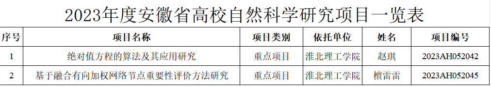 年度安徽省高校科学研究重点项目