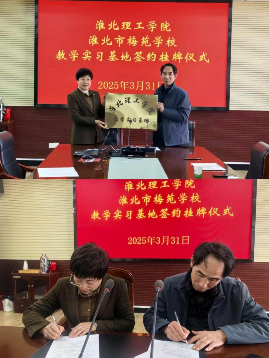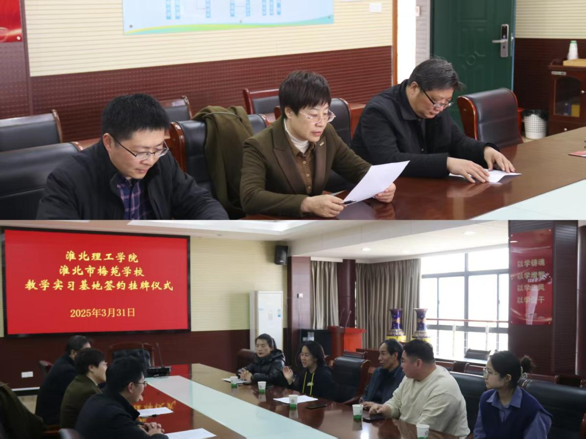 在热烈的掌声中,双方共同为“必赢76net线路官网教学实习基地”揭牌,并签署合作协议。此举标志着两校合作正式启动,未来将在教育教学领域开展全方位深度合作。必赢76net线路官网必赢76net线路官网将选派优秀学生赴淮北市梅苑学校实习,参与教学实践、班级管理等工作;淮北市梅苑学校则安排经验丰富的骨干教师担任实习指导教师,为学生提供专业指导,确保实习实效。此外,双方还将在教学研究、师资培训、课程开发等领域深化合作,共同探索创新人才培养模式,提升教育教学质量。
