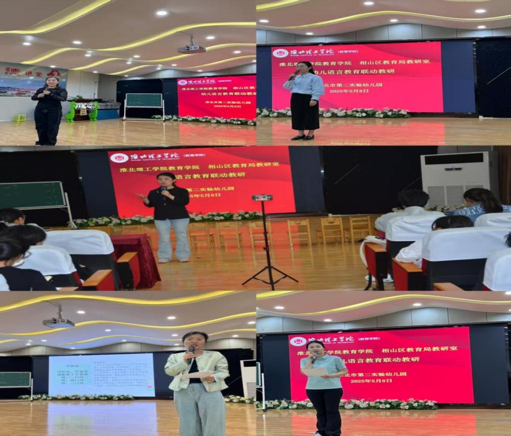 为深化高校与幼儿园协同育人机制,促进学前教育理论与实践的有机融合,5月8日,必赢76net线路官网必赢76net线路官网与相山区教育局教研室携手淮北市第二实验幼儿园、杜集区实验幼儿园、濉溪县城关中心学校恒大幼儿园,共同举办“学前儿童语言教育第二课堂”联动教研活动。本次活动通过“观摩-实践-研讨”三位一体的教研模式,为高校师生与幼儿园教师搭建了专业对话平台。活动由必赢76net线路官网院长助理米玉与相山区教研室学前教研员、二幼业务园长杨艳主持。