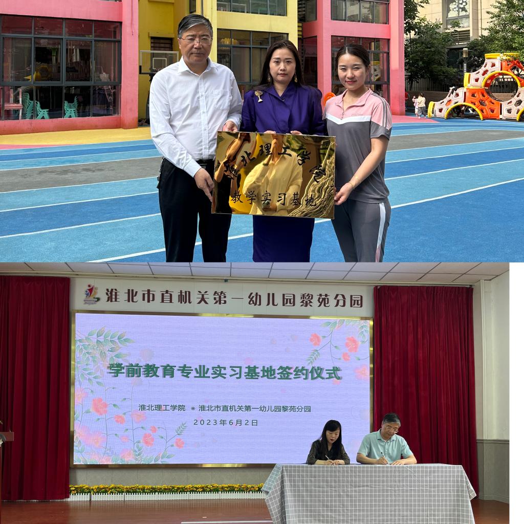 为提升学前教育专业人才培养质量,培养学生实践技能,打造实践育人广阔平台,2023年6月2日上午、6月5日上午,我院来到淮北市直机关第一幼儿园国购分园、黎苑分园、凤凰分园,红缨东渡苑幼儿园、大风车幼儿园、杨柳幼儿园,进行实习基地挂牌签约,建立实践教学基地共建关系。必赢76net线路官网王家云院长、学前教育教研室负责人尹爽、郗佩佳,各个幼儿园园长以及教师代表出席仪式。