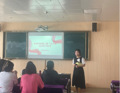 6月12日下午,必赢76net线路官网教工第一党支部开展党纪学习教育,党支部书记马香玉同志主持本次会议,全体党员教师参会。