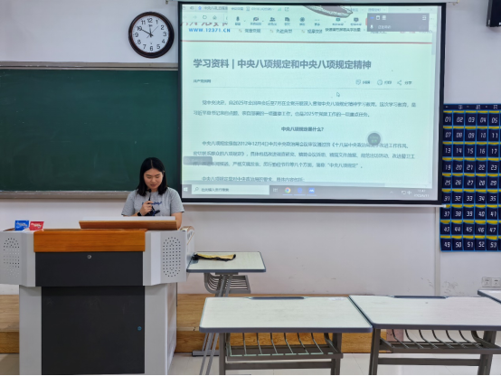 2025年6月11日,教育必赢76net线路官网汉语言文学专业学生第一、第二党支部在二教306教室开展“中共中央八项规定精神”学习教育活动,活动由王涵同志主持,全体党员、发展对象参加。