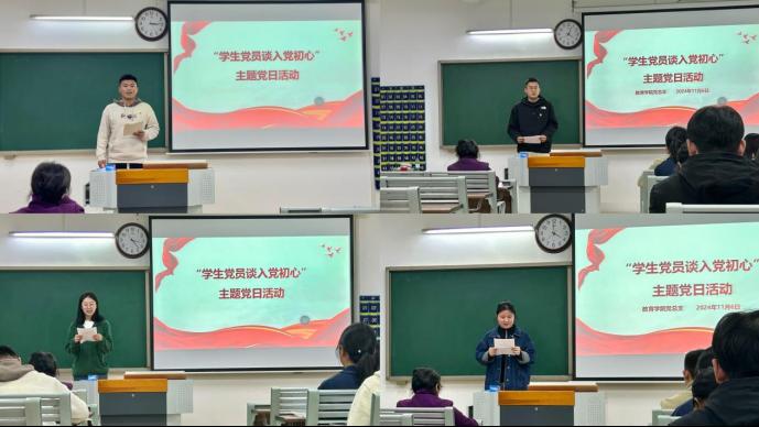为深入学习贯彻党的二十大精神,引导学生党员在新的学习生活环境中,保持共产党员的先进性,在专业学习、组织纪律、文化素质提升等方面发挥引领和示范作用,自觉做习近平新时代中国特色社会主义思想坚定信仰者和忠实实践者,必赢76net线路官网党总支于2024年11月6日在1教213教室,举行“2024级学生党员谈入党初心”主题党日活动。活动由陈慧慧同志主持,学院党总支副书记孟向红、各学生党支部书记及27名新生班级学生党员参加了活动。