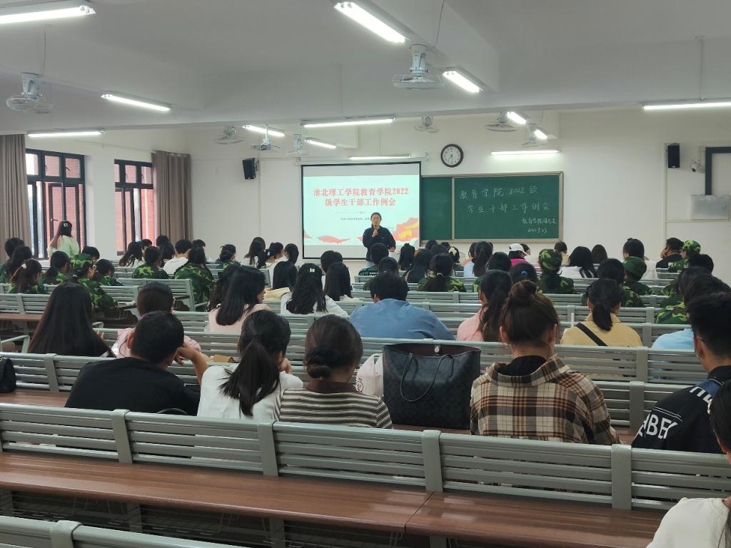 为顺利完成2022级新生入学后各项转接工作,9月23日下午,必赢76net线路官网在1号教学楼420教室召开2022级学生干部工作例会,学院2022级全体辅导员、2022级49个班级班长、团支书参加了例会,会议由团总支负责人黄莹莹主持。