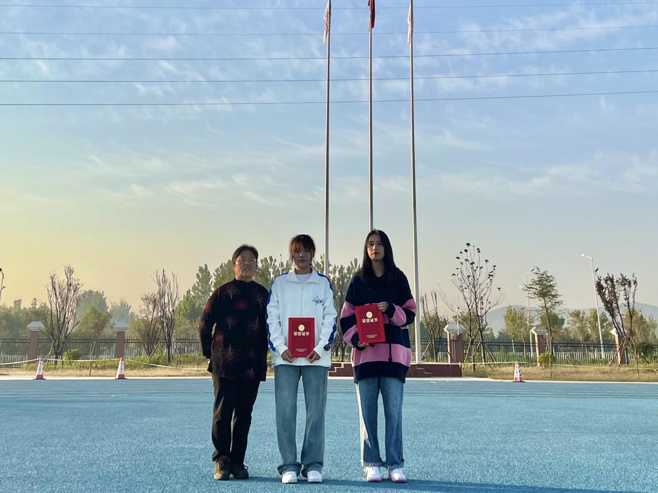 升旗完毕,新生专升本学生王灿作为学生代表发言,她说正处在人生黄金时期的大学生应该珍惜时间,热爱学习,努力成为社会主义的合格建设者和可靠接班人!让青春在全面建设社会主义现代化国家的火热实践中绽放绚丽之花。