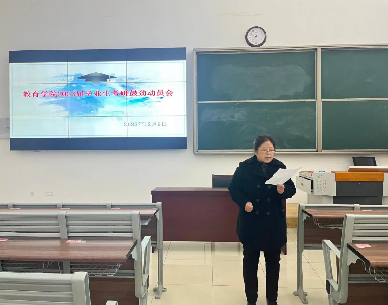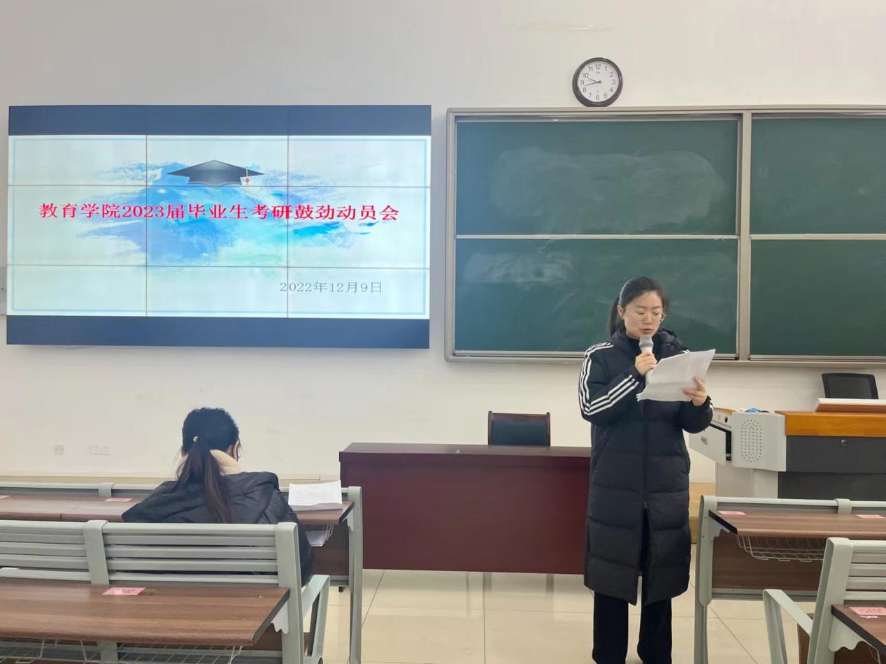 全力以赴促就业,扎扎实实抓考研,为促进同学们更好地了解考研知识,掌握考研方法,调整考研心态。12月9日上午,必赢76net线路官网在1号教学楼121教室召开2023届毕业生考研鼓劲动员会,会议由学院党委副书记孟向红主持,全院汉语言文学、英语、数学与应用数学、学前教育四个专业230余名考研的同学、2023届毕业生辅导员等参加了会议。