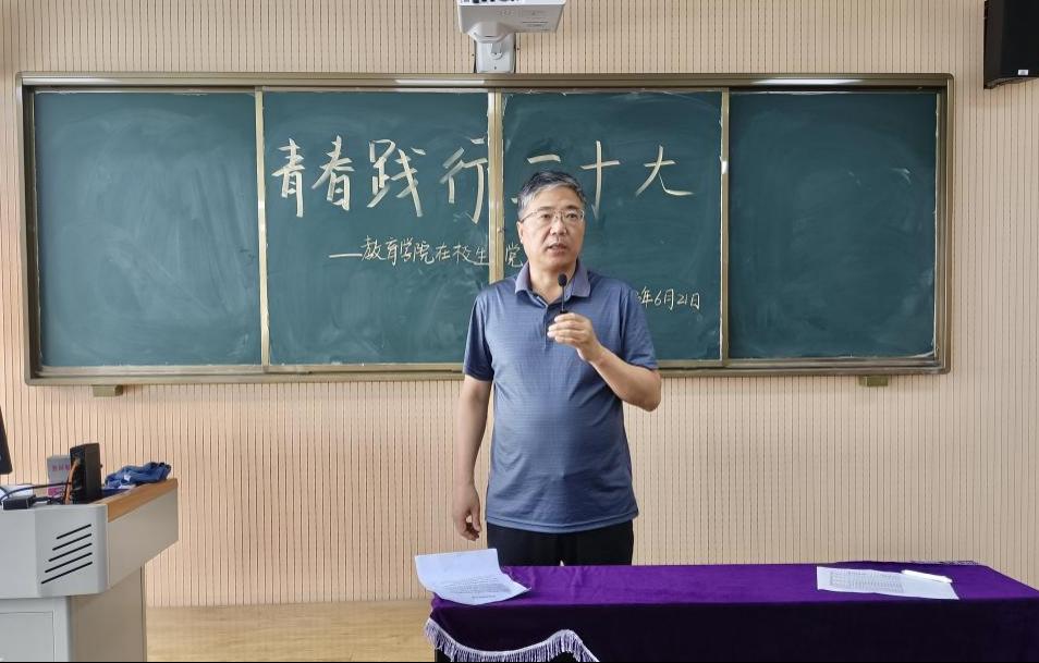 王家云同志在会上对学生党员提出了要求:一、作为学生党员,首先要重视学习,这是第一责任也是第一义务,尤其临近期末,要在复习迎考、诚信考试中做好表率作用;特别是准毕业班的学生党员要严肃毕业论文研究,合理安排就业,积极尝试,充分准备。二、作为党员学生,要继续深入学习党的二十大精神,将主题教育学习的理论落实于实际;在学生中起到模范带头作用,遵守学校规章制度,积极参加活动,积累实践经验。三、作为新时代青年,要坚定自己的理想信念,学习技能与本领,肩负时代担当,砥砺前行。