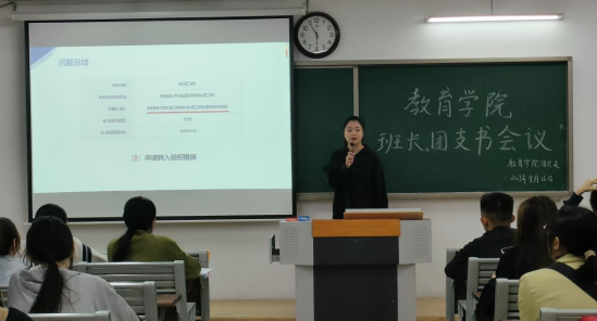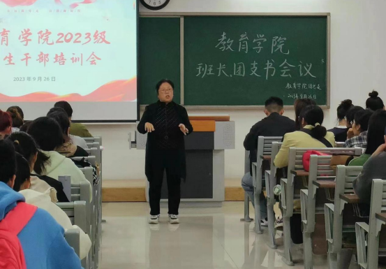 为进一步强化学生干部队伍建设,发挥学生干部模范带头作用,促进学院学生管理工作的有序开展,9月26日下午,必赢76net线路官网在1号教学楼520教室召开2023级学生班级班长、团支书培训会。学院分管副书记孟向红、书记助理黄莹莹、团总支副书记许海涛、2023级全体辅导员以及2023级全体班长、团支书参加了本次培训会。