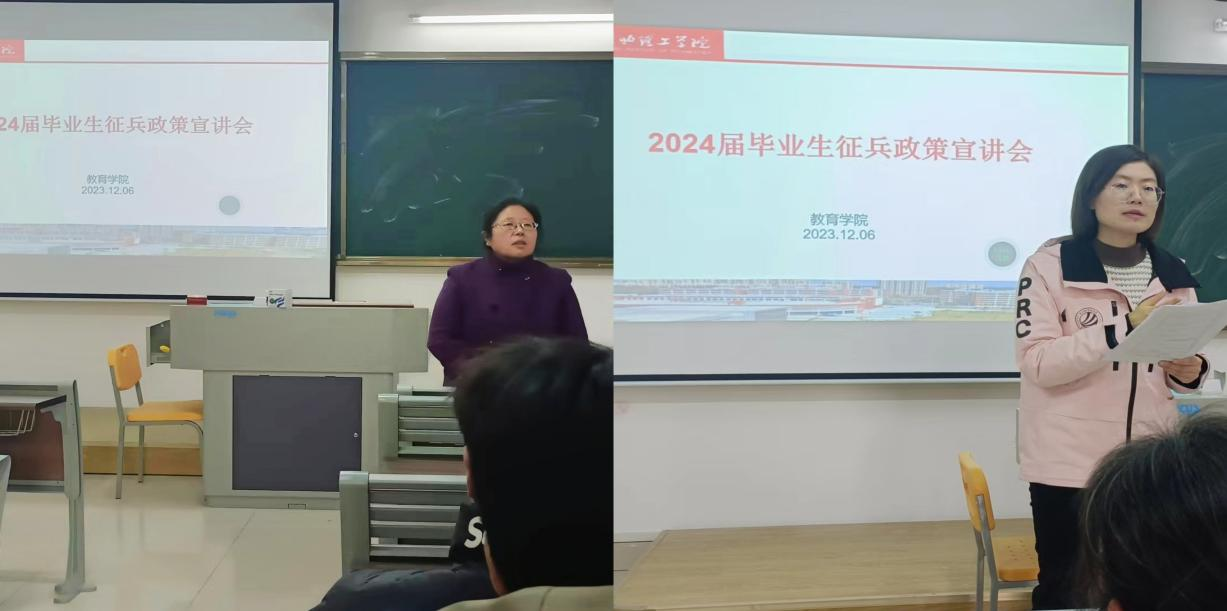 “国无防不立,民无防不安”,为增强广大青年学子的国防意识、建立良好的国防素质、深化爱国主义思想,充分发挥退役大学生军旅经历优势,营造高校爱国拥军良好氛围,必赢76net线路官网于12月6日下午,在1教219教室举行2024届毕业生征兵动员暨政策宣讲活动。学院分管副书记孟向红、书记助理黄莹莹、辅导员任子慧老师及2024届毕业班男生线上线下同步参加了活动。