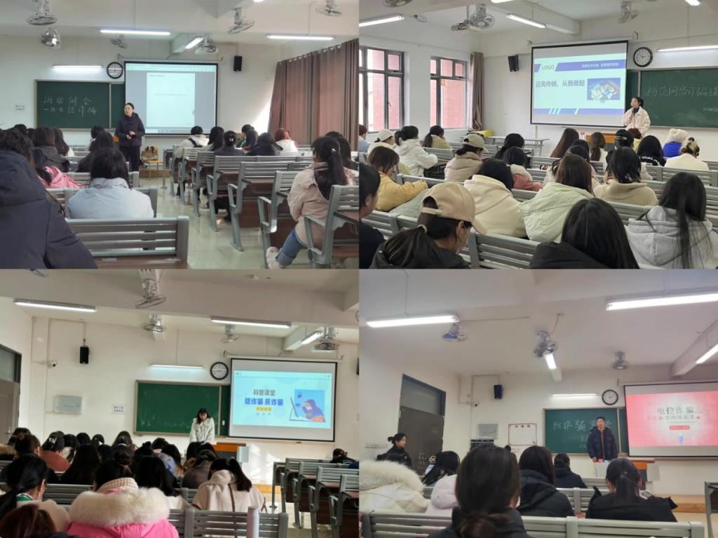 会上,辅导员老师们再次提醒同学们面对花样翻新、层出不穷的电信网络诈骗思想上务必提高警惕,不要抱有任何贪便宜心理,牢记“天上不会掉馅饼”。辅导员老师们还通过身边真实的案例告诉同学们遭受电信网络诈骗给个人、家庭、社会带来的危害,提醒同学们不要因为自己一时的疏忽大意,给个人和家庭财产带来重大损失。主题教育中各班同学再次观看了防诈反诈的主题宣传片,辅导员老师们再次向同学们介绍电信网络诈骗的特点、犯罪分子如何利用诈骗对象的心理以及怎样防范应对诈骗,重点介绍诈骗犯罪形势和特点,传授防骗知识和自救技巧,进一步提升宣传的精准度。