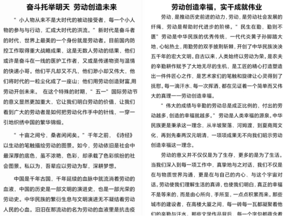 四、“笔耕不缀”——举办“劳动创造幸福生活”征文比赛