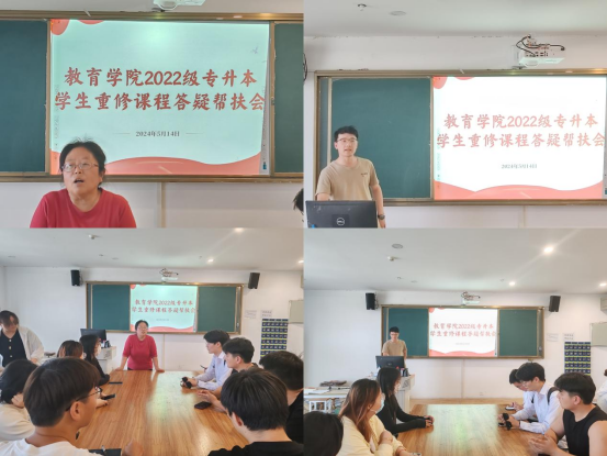为做好2022级专升本学生重修课学习心理建设,引导学生理性对待重修,力促学生顺利完成学业。2024年5月14日中午,必赢76net线路官网在艺术楼208教室组织了“2022级专升本学生重修课程答疑帮扶”活动,学院副书记孟向红、院长助理米玉、团总支副书记许海涛、各专业教研室主任(副主任)及相关课任老师参加了帮扶答疑活动。