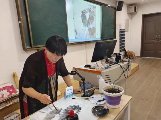 随后,马泰、李凌夫妇进行现场创作,指导学生体验纺织画的创作过程。学生们跃跃欲试,纷纷动手尝试,在布上创作出了各种图案的作品,对纺织画表现出了浓厚的兴趣。