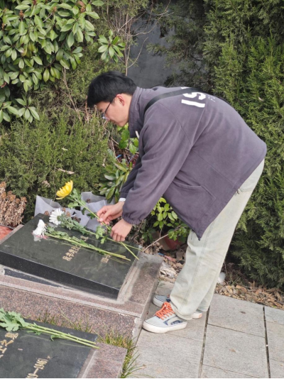 抵达烈士陵园后,团员们手持清洁工具,分组对陵园主干道、纪念碑广场及烈士墓碑区域进行细致清扫,擦拭墓碑浮尘,清理落叶杂草,以实际行动守护英烈安息地的庄严肃穆。随后,全体团员整齐列队,向革命烈士纪念碑敬献鲜花,集体默哀致敬,并在团支书带领下重温入团誓词,铿锵誓言回荡在陵园上空,彰显新时代青年的使命担当。