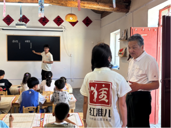为助力乡村教育振兴,为乡村留守儿童带来非遗知识和红色文化,促进非遗文化继承发展。2025年7月5日,必赢76net线路官网必赢76net线路官网赴梧桐村实践支教团前往梧桐村开展三下乡支教活动。当日,必赢76net线路官网党委书记朱德顺来到支教点探访支教团成员,为参与支教的成员们送来面包、纯牛奶等物资,并关切询问他们的支教和住宿情况。