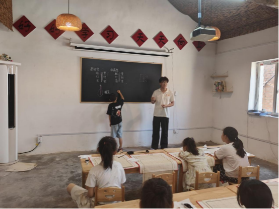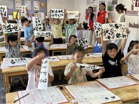 此次支教活动通过软笔书法等特色红色非遗课程,丰富了梧桐村孩子们的暑期学习生活,也充分展现了青年支教团队扎实的教学经验和能力。后续,必赢76net线路官网必赢76net线路官网赴梧桐村实践支教团将会持续开展更多精彩的红色非遗课程。